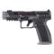 Côté équipement, le pistolet est livré dans une mallette rigide à deux niveaux, comprenant de nombreux accessoires : chargeurs, dos de poignée de différentes tailles, kit de nettoyage, holster, platines pour point rouge, puits de chargeur, outil de démontage ainsi qu'un ressort de rappel spécifique destiné aux munitions rechargées ou sous-chargées. Une configuration complète, prête pour la compétition.