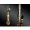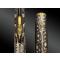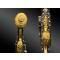 Canons à âme lisse, à deux registres, le premier est à pans, le second est rond ; il est richement décoré de damasquines d’argent. Sur le premier registre, les pans supérieurs présentent deux faisceaux d’armes, un casque, une frise marquée LONDON, trois croissants de lune, des étoiles, et une bague à l’or au tonnerre ; le second registre offre un ruban surmonté d’une branche fleurie et feuillagée et une bague à l’or au niveau de la bouche. Guidon et lumière dorés. Queue de culasse bleuie, gravée de fleurs et feuillages à fond d’or ; tête de vis guillochée.