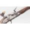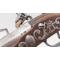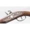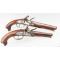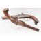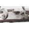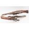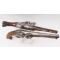 Paire de longs pistolets de marine à silex. Platines ciselées à corps plats signées Fitz Patrick arquebusier référencé à Dublin à partir de 1737, chiens à corps plats en col de cygne. Canons à pans puis ronds marqués sur la bande supérieur « à Pierre Bufière ». Crosses en noyer sculpté à calottes en têtes de chiens de mer trace d'ancienne réparation d'usage sur une. Toutes garnitures fer, contre-platines en fer découpé à décors d'un médaillon central. Petit jour à un bassinet, nettoyage. Bon fonctionnement des mécanismes, un léger fêle sur un ressort de chien renforcé par une pièce de laiton. Longueurs totales : 36 cm.