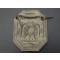 De forme octogonale, H 10,1 cm, largeur 8.1 cm, en laiton estampé en relief de l'aigle impériale couronnée surmontée d'un ruban portant l'inscription « ADMINISTRATIONS DES FORÊTS ». Moulures d'encadrement saillantes et perlée