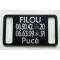 EN GENERAL NOM DE L'ANIMAL + TÉLÉPHONE ET EVENTUELLEMENT LA MENTION PUCE ou PUCÉE