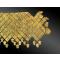 Plastron à mailles plates de forme losangique en fer incrusté de laiton. Elles sont centrées de fleurs et reliées entre elles à l’aide de mailles ovales. Les partie latérales et inférieures sont agrémentées de pendeloques feuillagées et de deux agrafes.
