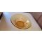 PLAT ANCIEN ANNÉES 40 EN VERRE COLORÉ JAUNE ET DÉCORS EN RELIEF