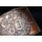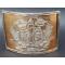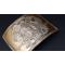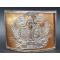 Beau plateau de ceinturon de la garde nationale aux armes de France couronnées et au faisceau de licteur surmonté d'une couronne de lauriers, au milieu, une épée en pal portant un bonnet phrygien, de part et d'autre, un canon, des drapeaux, en-dessous, des boulets et des tonneaux à poudre, au-dessus, une banderole: "LA NATION LA LOI LE ROI", fond en laiton doré, les ornements et le pourtour en argent estampé; 61 x 81 mm. (Il manque cinq pointes de drapeaux).