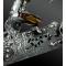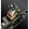 La vis du chien, aussi appelée la noix, est dissimulée sous un visage presque lunaire, de forme ronde et en relief. Le bassinet est également ciselé d’un visage ailé, la batterie est ajourée de motifs végétaux et finement ornée de rinceaux feuillagés. Le couvre-bassinet est animé d’une tête anthropomorphe achevé en feu.