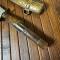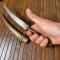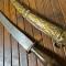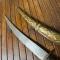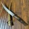 Lame courbe tranchante, pas de jeu , dans son fourreau en laiton ciselé.