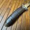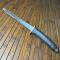 Manche en rondelle de cuir , garde acier, lame à double gorge