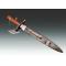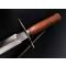 Poignard de tranchée le Vengeur modèle 1916, poignée bois sans usure particulière, garde en fer réceptionnée B étoilé. Lame longue de 167mm à talon plat et arrête médiane, dans sa finition d'origine sans usure particulière ni oxydation, talon plat marqué du fabricant. Bon fourreau fer en excellent état, peinture noir d'origine, deux légères traces de coups au dos. France, WW1, TBE