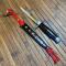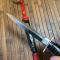 Pommeau alu, manche à empilement, lame inox , avec son fourreau cuir .