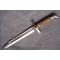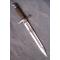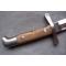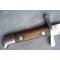 Beau poignard d'artilleur Roumain 1892 , superbe lame bien brillante avec des micros-piqûres sur l'ensemble , ce modèle est la variante sans signature de fabriquant , plaquettes en noyer maintenues par des rivets à têtes arasées , belle patine avec quelques traces de manipulations et une galerie de vers ancienne visible sur les photos.