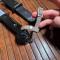 Lame bowie à dos de scie , la baïonnette et le fourreau forme une cisaille pour les barbelé et même câble électrique (fourreau isolé manchon caoutchouc)