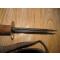 Poignard à restaurer: lame piquée et ébréchée sur le bout, étui cuir en assez bon état, la lanière est coupée au niveau d'un rivet