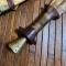 Fusée bois, pommeau conique en laiton, lame courbe à double tranchant et gorges centrale décoré ,aiguisé, taches d'oxydation à nettoyer.