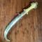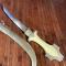 Fourreau bois recouvert de plaque argentée ciselé et poigne en matière type ivoirine .