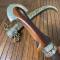 MANCHE EN BELEL CORNE DE , pommeau laiton argenté et ciselé, belle lame coube ancienne on distingue un vestige de gravure, fourreau bois , fer et laiton ciselé.