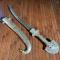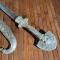 Fourreau bois recouvert de plaque argentée ciselé et poigne bois aussi recouvert de plaque argenté ciselé.