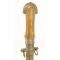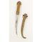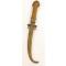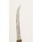 Poignée en corne blonde(très claire-translucide) à garnitures de laiton ciselées. Lame à deux pans, courbe, longueur 23.5 cm. Fourreau en laiton décoré en suite. Longueur totale 40cm