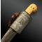 Fourreau en bois recouvert de de maillechort ciselé, pompon en tissu rouge et jaune.