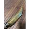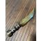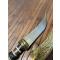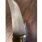 Manche à empilement de rondelles de corne et os ouvragé , lame courbe à double tranchant gravée au tiers.