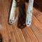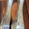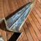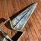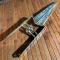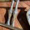 Lame fer forgée a arrête médiane et double tranchant de 20 cm renforcée à sa pointe pour transpercer les cotes de mailles, poignée en acier avec reste de frise à l'or dorure.