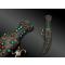 Fusée cintrée et évasée sur la partie proximale, en argent filigranée de fils d’argent torsadé, décoré de cabochons de corail et turquoise.