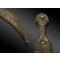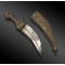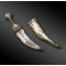 Lame courbe en fer, à double tranchant, à arrête médiane.