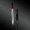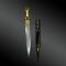 Ivoire marin, corne, fer, acier damas, or et étoffe