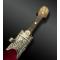 Fourreau en bois recouvert de velours rouge, deux garnitures en argent niellé gravée de rinceaux.