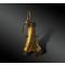 Poire à poudre constituée d’une section de bois de cerf à garnitures en fer et maillechort. Elle est animée d’un décor incisé sur la face avant d’un couple en pieds en tenue traditionnelle.