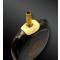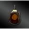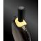 Petit poire à poudre de forme ovale en laque écaille centré d’un médaillon rond de corne blonde incrusté sur les deux pans. Col agrémenté de deux passants de glissière, bouche ornée d’un empiècement renflé en os, le bec, du même matériau, est en cône, enfin le bouchon est en peau grainée.