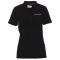Polo femme manches courtes, 100% coton 200g/m². Trois boutons en teinte à effet perlé, bordure des manches côtelées, fentes latérales, coutures du col couvertes avec ruban en contraste, ruban de renfort latéral. Coloris noir.