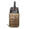 Le porte-radio BUNGY 8BL19 TAN de Vega Holster est conçu pour les professionnels des forces de l'ordre, de la sécurité et du tir tactique. Fabriqué en polymère injecté thermo-moulé, il s'adapte à la plupart des radios jusqu'à 5,5 cm de largeur, grâce à un système élastique de serrage latéral. Un élastique supérieur réglable avec bouton pression sécurise l'équipement. Il est fourni avec fixation ceinture 60 mm et passant M.O.L.L.E 8K87, pour une compatibilité optimale avec tout gilet tactique.