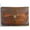 Portefeuille à soufflets en maroquin brun à longs grains, marqué au fer aux angles et centré du nom du propriétaire Seguenot / Commissaire des Guerres / 1772 », le rabat en accolade, s'ouvrant par une ferrure en acier (avec clé). L'intérieur en maroquin vert doré aux fers à décor de frises néoclassiques et d'un semi de fleurettes. Usures.