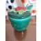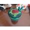 Décor émaillé vert et rouge pour les fleurs du couvercle.