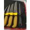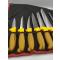 Sac de coutellerie comprenant : 6 couteaux boucher (couteau de cuisine lame 10 cm / couteau boucher lame 27 cm / couteau chef lame 21 cm / couteau à désosser lame 13 cm / couteau desosser flexible lame 15 cm / couteau saigner lame 21 cm + 1 fusil à aiguiser 25 cm).