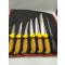 Sac de coutellerie comprenant : 6 couteaux boucher (couteau de cuisine lame 10 cm / couteau boucher lame 27 cm / couteau chef lame 21 cm / couteau à désosser lame 13 cm / couteau desosser flexible lame 15 cm / couteau saigner lame 21 cm + 1 fusil à aiguiser 25 cm).