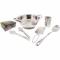 . Composé de: 1 passoire, 1 râpe à fromage, 1 pince à spaghetti, 1 cuillère de service et 1 saupoudreur.