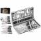 Composition : 1 couteau jambon-saumon (lame 28 cm) / 1 spatule (25 cm) / 1 éminceur (lame 20 cm) / 1 couteau filet de sole (lame 20 cm) / 1 fourchette deux dents (lame 20 cm) / 1 couteau désosser (lame 15 cm) / 1 spatule plate (25 cm) / 2 couteaux office / 1 couteau tomate / 1 berceuse / 1 couteau pamplemousse / 1 gouge / 1 deco melon / 1 boule melon / 1 vide pomme / 1 coquilleur à beurre / 1 roulette pizza / 1 canneleur / 1 zesteur / 1 épucheur / 1 roulette à pâtisserie / 1 aiguille à brider.