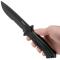 La lame en acier inoxydable US 420HC pleine soie est robuste et recouverte d'un revêtement céramique pour une meilleure résistance à la corrosion et une signature visuelle réduite. Pour l'ergonomie les plaquettes en caoutchouc surmoulées assurent une prise en main douce, confortable mais sûre dans toutes les conditions. Il est également conforme MIRS. Tout comme le couteau, l'étui est conçu pour être à la hauteur de la tâche avec un verrou de pouce à libération par friction pour la sécurité. Le bruit est amorti grâce à un revêtement softgrip moulé qui, comme le nylon balistique, est conforme MIRS. Il est également compatible MOLLE et est livré avec une sangle de jambe.