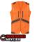 Gilet de traque 100% polyester Ripstop renforcé avec enduction polyuréthane, doublure filet anti-transpiration 100% polyester. Empiècement renfort d'épaule double épaisseur. Zip frontal double curseur. Fentes latérales zippées. 2 poches poitrine zippées, 4 grandes poches basses zippées avec cartouchières intégrées (5 balles et 6 cartouches). 2 poches intérieures zippées. Carnier zippé doublé et lavable. Normé CE