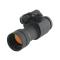 Ayant été habitué avec un point rouge qui n'était pas de bonne facture, j'ai franchis le cap d'acheter un aimpoint. C'est simple, on prends l'habitude de tirer les deux yeux ouverts sans être perturbé. La bague livré avec permet de le monter sans qu'il soit trop haut, donc pas besoin de monter un busc !