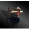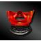 Mempo ou menp? bipartite en fer de type me no shita men, c’est-à-dire qu’il recouvre la partie mentonale, le nez jusqu’aux pommettes suivant le contour inférieur des yeux. La deuxième partie amovible cette fois, vient protéger le nez et la lèvre supérieure pigmentée de rouge surmontée d’une moustache de crin clair.