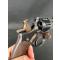 Les pièces: chien, queue de détente, ressort de la tige d'éjection, portière et axe de barillet dans leur finission jaunie