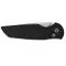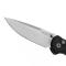 Une lame lisse forme Drop Point stonewashed en acier CPM-S35VN dureté 59HRC avec deux ergots pour une ouverture en douceur à une main et mécanisme "Button Lock".