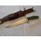 TRES FORT COUTEAU DE CAMP , TRES BELLE ET FORTE LAME de 23cm en inox , tres affutée ,contre lame affutée , forte garde acier ,construction full tang garantie de solidité .manche syntéthique insensible à l'humidité .passant pour dragonne . poids 530 gr .Tres bel étui en croupon de cuir , travail artisanal fait main , tout coutures sellier avec fil à haute résistance .crochet pour ceinturon , large passant de ceinture 7cm , belle pochette pour et avec pierre d'affutage , bride de maintien pressionnée , cordon de jambe .bel outil pour le terrain , utilisation comme machette , sans peur pour les gros travaux .visitez ma boutique , d'autres pieces interessantes .