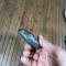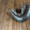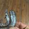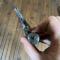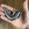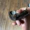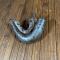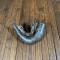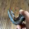 Ancien et rare Pulvérin a bassiné à poudre forme coudé en fer ciselé, avec deux attaches de suspension pour le transporter en pendentif .
