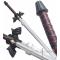 Magnifique ensemble de 2 epees Link taille reelle de l'epee de Link tout en latex / Mousse. Ultra resistant, absorbe les chocs, epee conçus pour des combats sans vous blesser. Black Blue edition. Convient pour adulte ou enfant. Longueur totale : 80cm Longueur lame : 55cm Poids : 170grs epaisseur Lame : 1,2cm Superbe epee de combat.