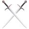 Magnifique ensemble de 2 epees Excalibur tout en polypropylene couleur argent. Epee tout en plastique ultra resistant, concus pour les combats sans risque de blessure.
