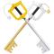 Superbe reproduction des 2 Keyblades de Sora et de Mickey tiré du jeu vidéo "Kingdom Hearts". La keyblade est entièrement en mousse. La lame est remplacée par une clé et la garde s'étend sur tout le manche. Ultra résistante, absorbe les chocs, épée conçus pour des combats sans vous blesser.