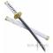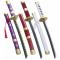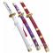 Magnifique ensembe des 3 mini Katanas en bois de Zoro Roronoa de la saga "One Piece" -Katana Enma -Katana Kitetsu Sandai -Katana Wado Ichimonji Les lames sont en bois peint. Les tsubas sont en ABS. Livre avec 3 supports en ABS. Longueur totale de chaque Epee : 45cm Longueur de chaque lame : 27cm Poids de chaque Epee : 110grs Ideal pour la collection.